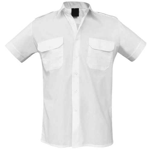 Camicia Bianca Manica Corta Modello Militare Con Spalline Marina Militare