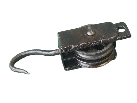 Antica Carrucola Con Gancio In Ferro Doppia Puleggia In Ghisa